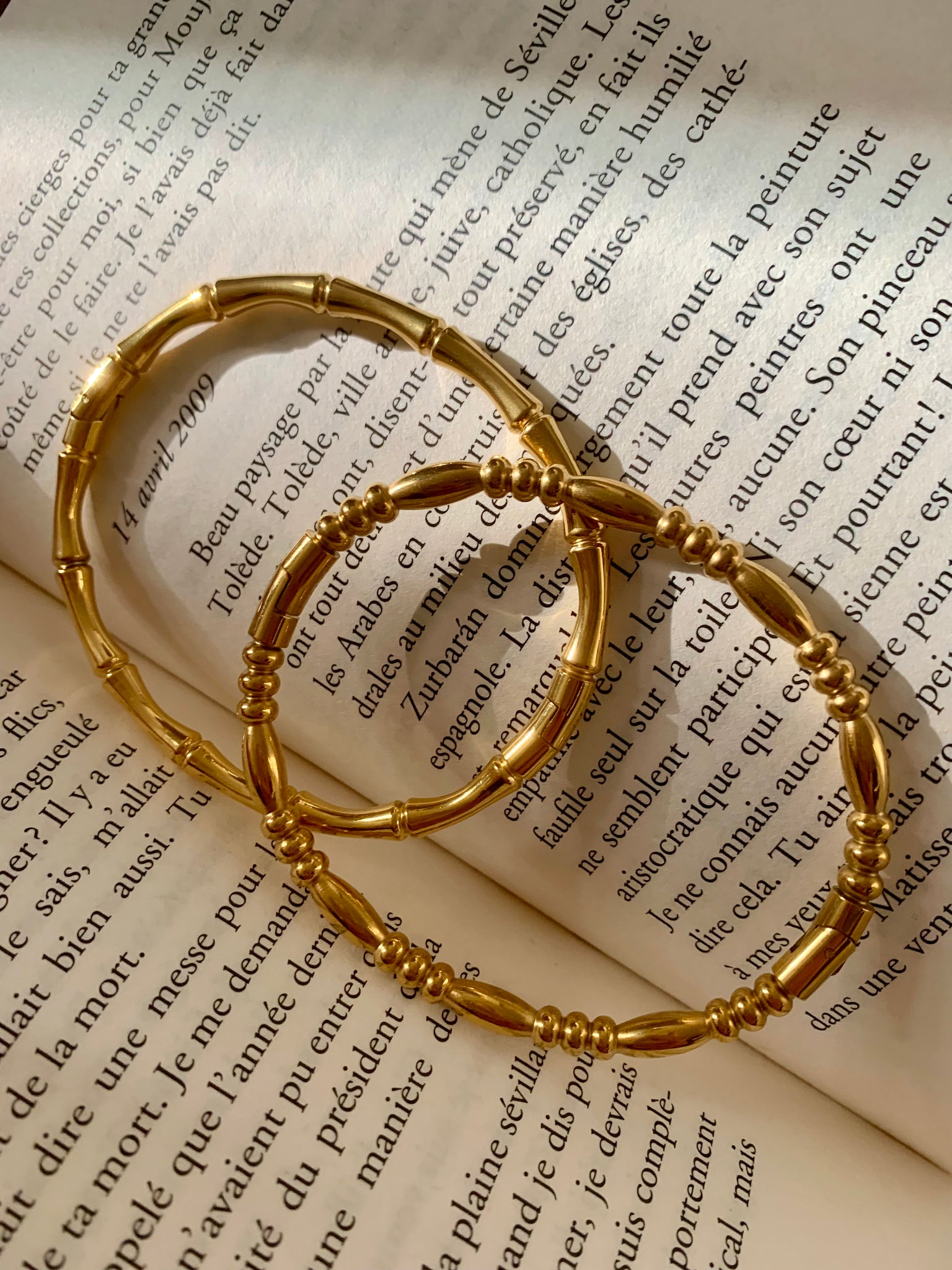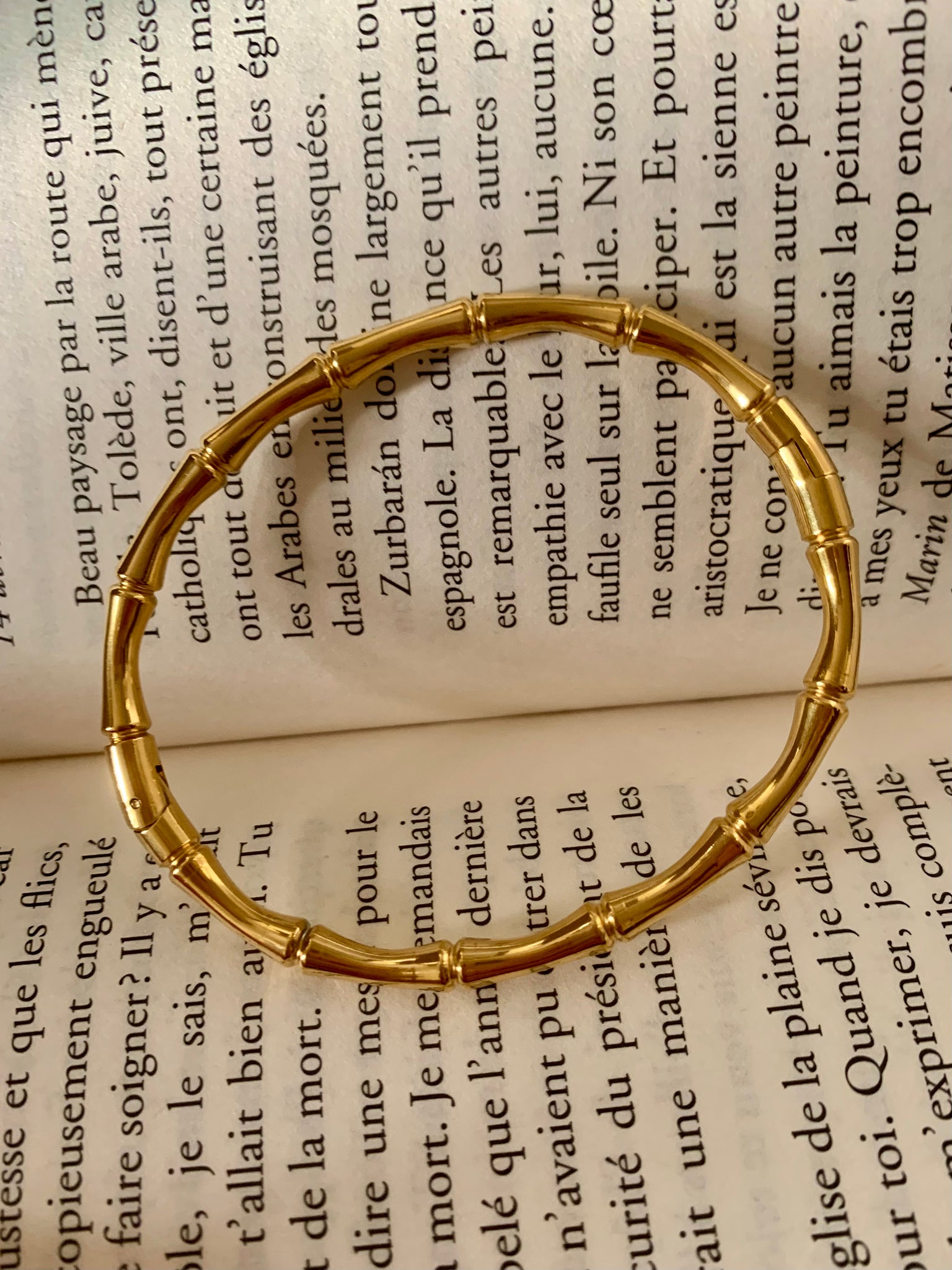 Jonc bracelet Bambou en acier inoxydable avec fermoir attache invisible crochet.