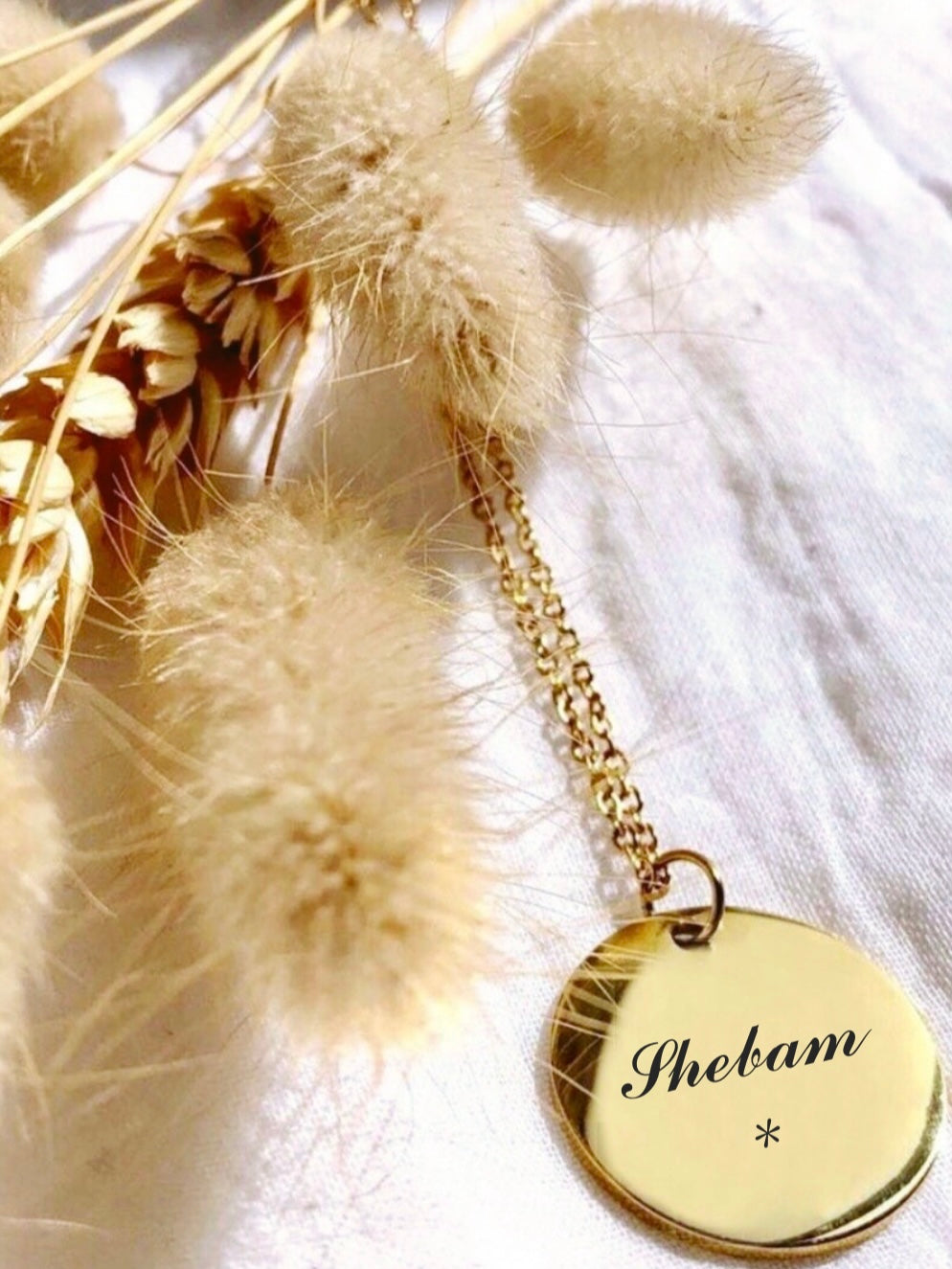 Collier en acier inoxydable avec chaîne à maillons et une médaille gravée « Maintenant ou jamais » (Diamètre : 23mm x 20mm ; Épaisseur 1,4mm).